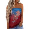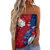 Women's Summer Sexy Strapless Off-Shoulder Elastic Band Design Independence Day Print Top