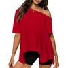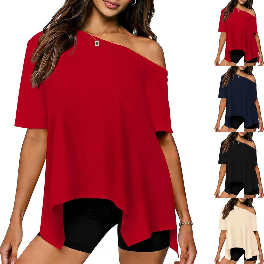 Women's Casual Off-shoulder Short-sleeved Asymmetric Hem Casual T-shirt Top