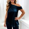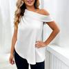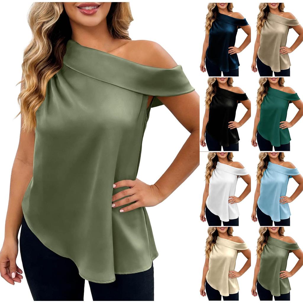 Women’s Fashionable Casual Plain Off-the-Shoulder Satin Sleeveless Asymmetrical Hem T-Shirt Top