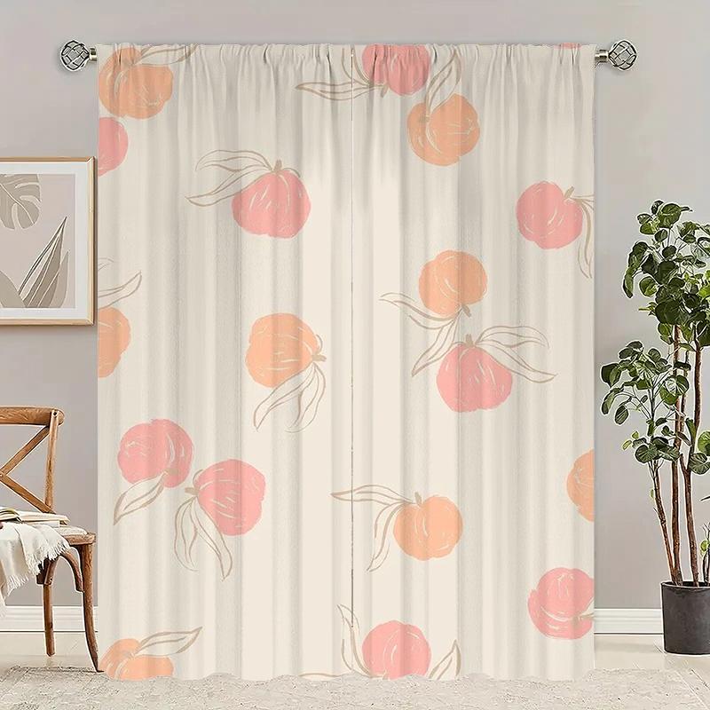 Set Of 2 Fruit Printed Curtains Polyester Material Suitable Bedroom Living Room Decoration Curtain For Made