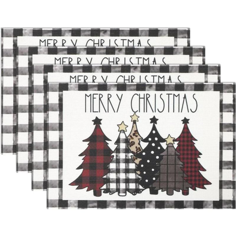 1PC Waterclor Buffalo Plaid Christmas Trees Placemats Non-Slip Winter Table Mats for Outdoor Indoor Party Kitchen Dining Decor