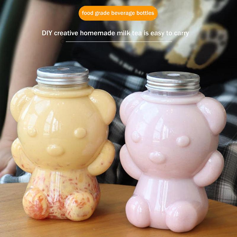 1Pc 700ml Big Head Bear Transparent Plastic Juice Bottle Sealed Cup for Juices Smoothies Milk And Homemade Drinks