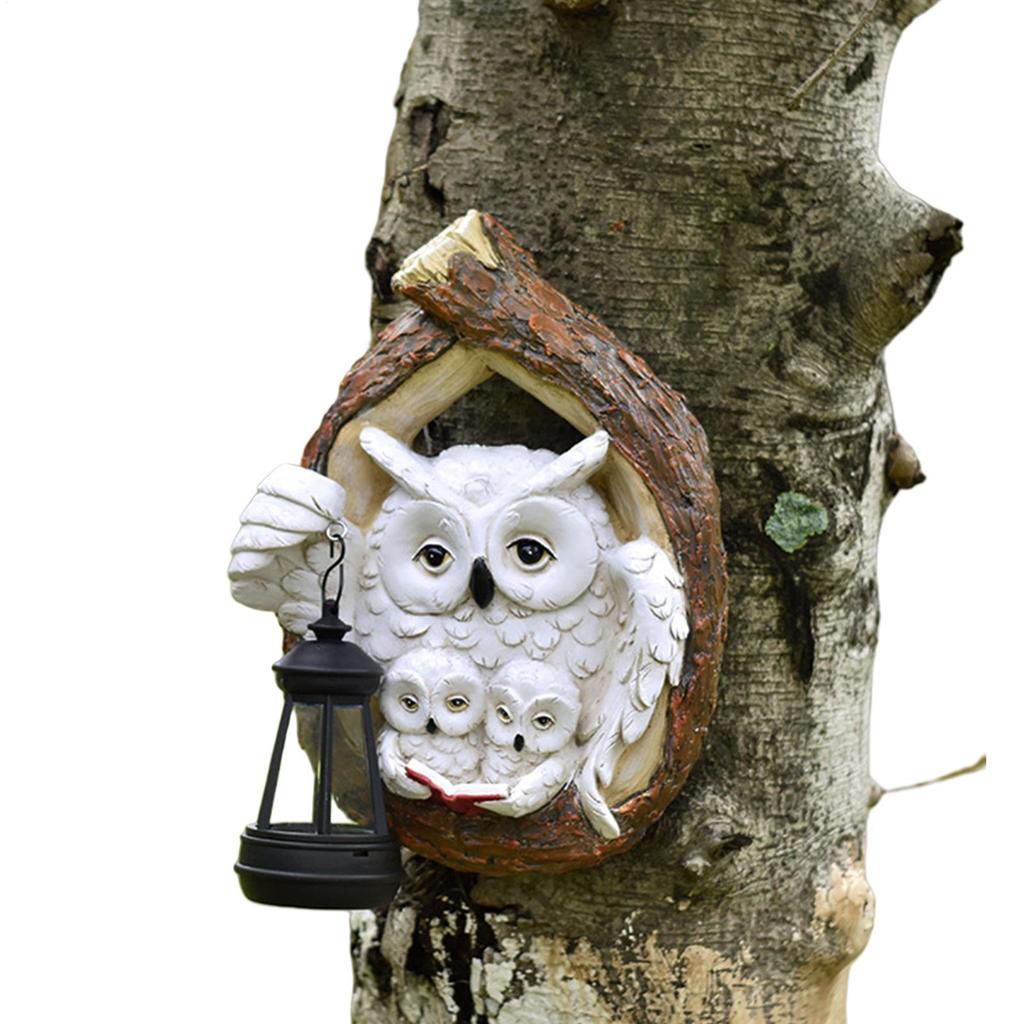 Outdoor Owl Solar Lights Resin Owl Decorative Figurine Ornament Wall Mounted Waterproof Yard LED Lights Garden Courtyard Decor