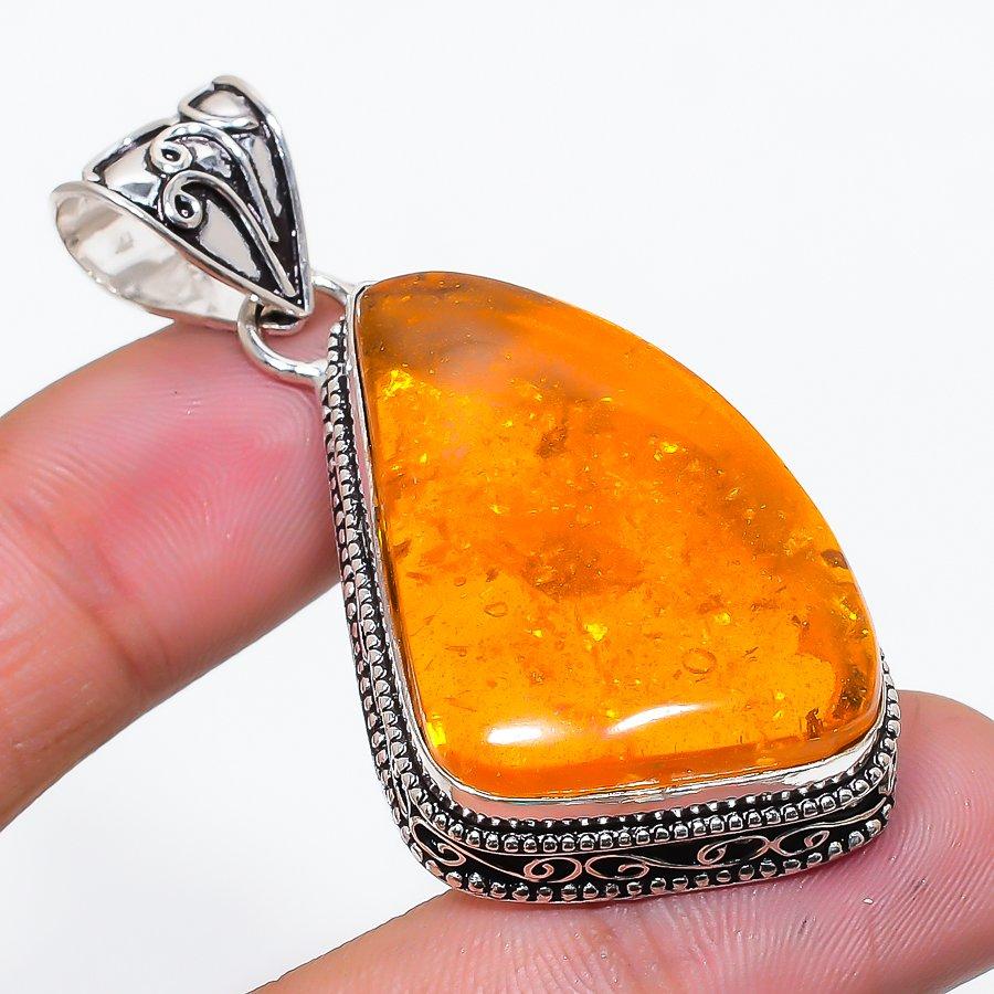 Natural Baltic Amber Gemstone 925 Sterling Silver Jewelry Pendant 2.25" AP-14309