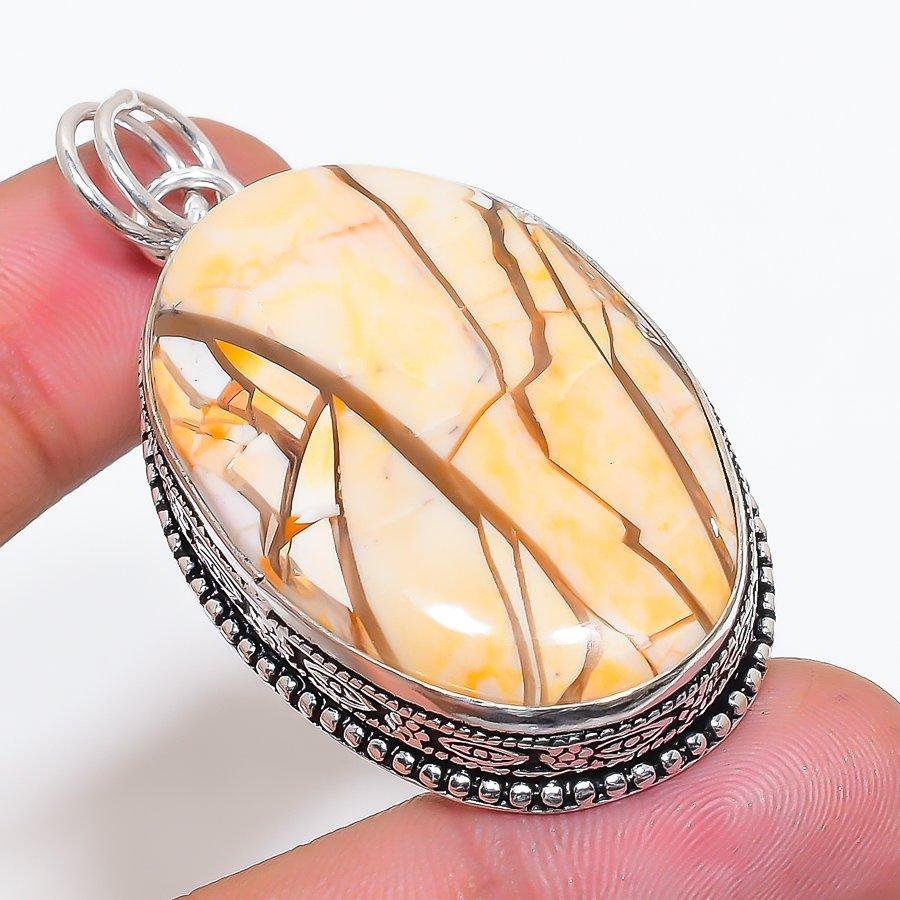 Natural Brecciated Mookaite Gemstone 925 Sterling Silver Pendant 2.36" AP-14196