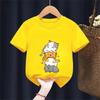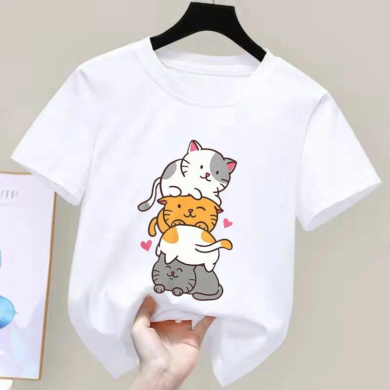 Cute Cat Graphic Kids Tshirts Summer Short Sleeve Tees Cartoon Animal Boys Girls Clothes Kawaii Kitten Tops Y2K Children T-shirt