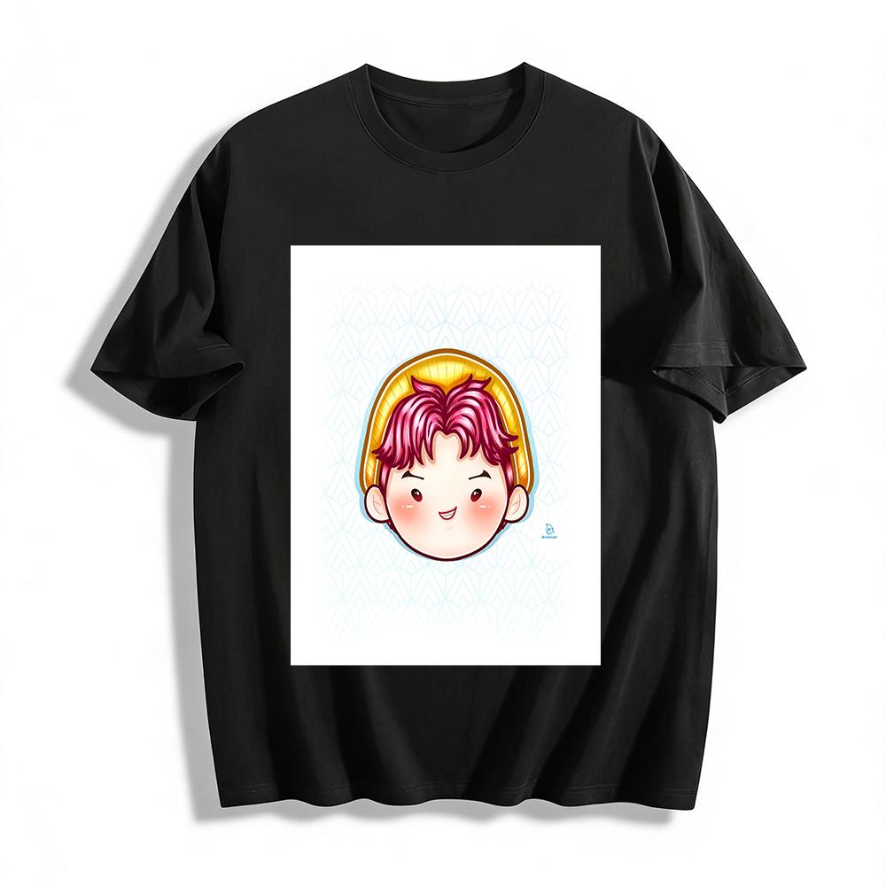 Cute Pink-haired Cartoon Boy Print T-shirt Unisex Casual Daily Commute Top Soft Comfortable Tee Pure Cotton T-shirt