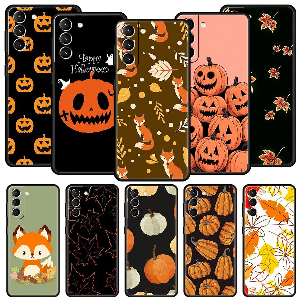 Autumn Leaves Fall Fox Pumpkin Halloween Phone Case For Samsung Galaxy S24 S23 S22 S20 Ultra S21 FE 5G S10 S9 Plus S10E Cover