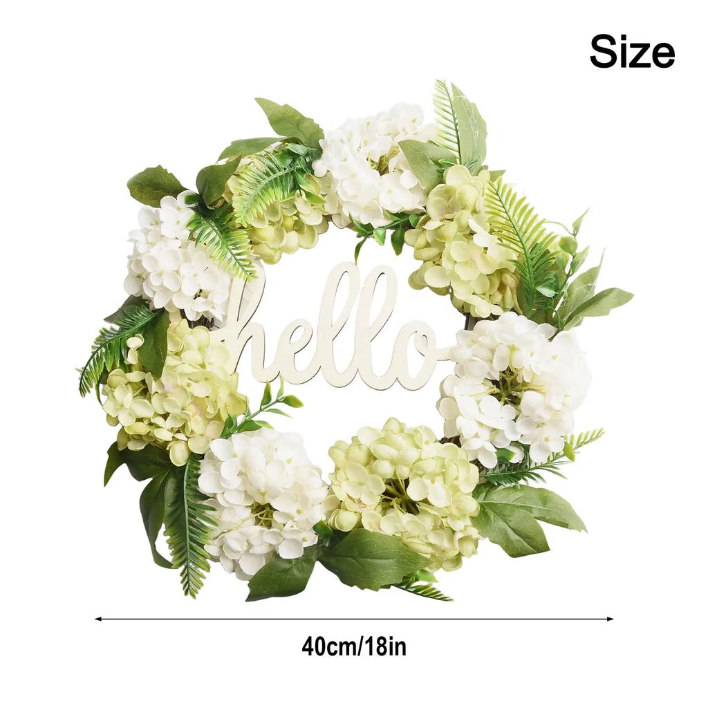Artificial Hydrangea Wreath with Hello Sign for Indoor Outdoor Wall Door Decor 40cm Silk Flower Ring for Home and Party Setting
