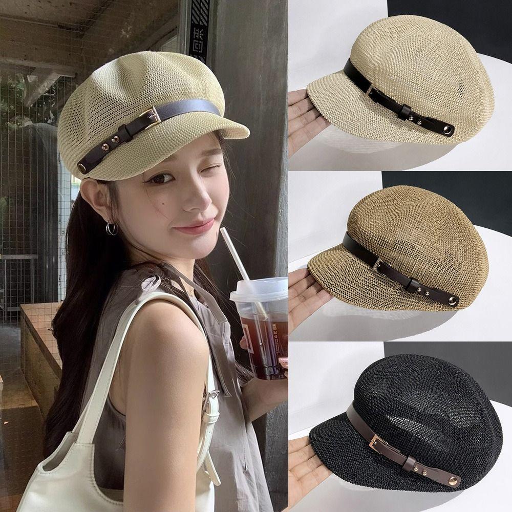 Knitted Women's Beret Breathable Octagonal Hat New Female Baseball Cap Sun Protection