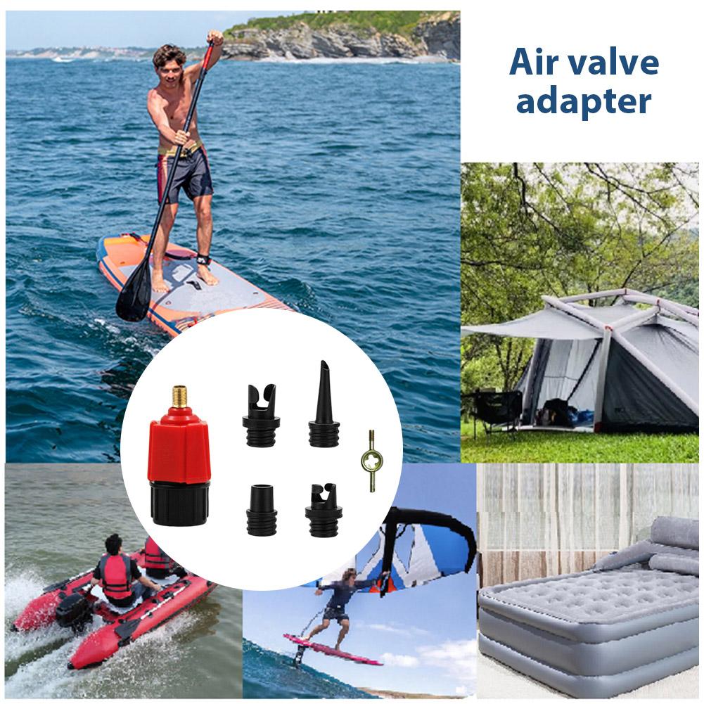 Air Valve Adapter Multifunctional Pump Valve Adapter 4 Standard Nozzles for Inflatable Boat Bed for Stand Up Paddle Board