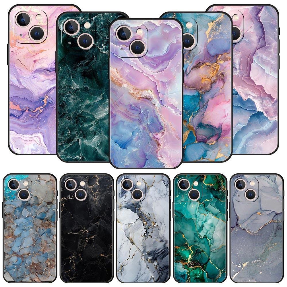 Phone Case For iPhone 16 15 14 13 12 11 Pro Max XS X XR SE 7 8 Plus Soft Silicone Black Cover Funda Fashion Marble Pattern