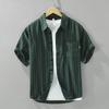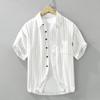 Men's Vertical Stripe Patch Pocket Short Sleeve Button Down Shirt Casual Streetwear Top