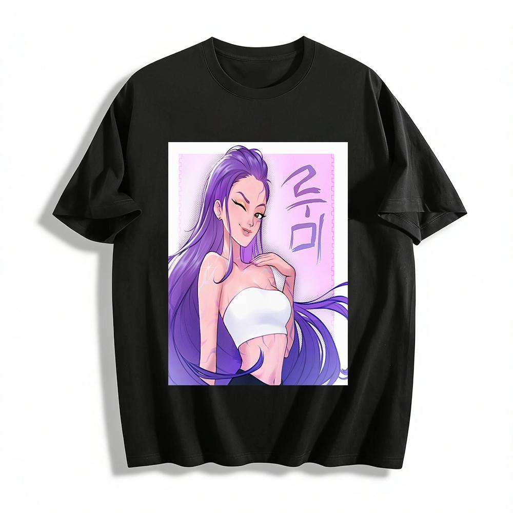 Cyber Style Purple Hair Girl Print Top Trendy Korean Cool Casual Loose Crew Neck Short Sleeve T-Shirt Pure Cotton T-shirt