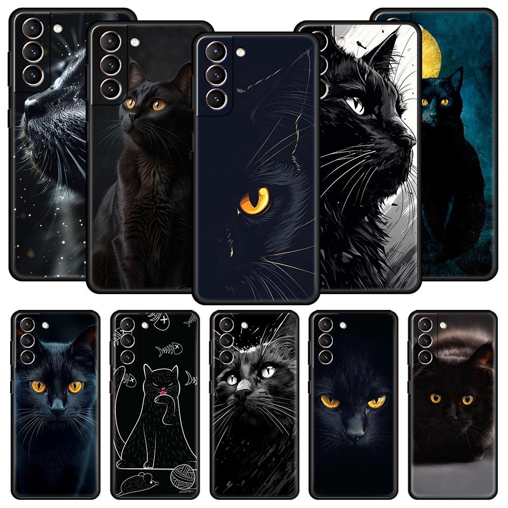 Black Cat Phone Case For Samsung Galaxy S24 S23 S22 S20 Ultra S21 FE 5G S10 S9 Plus S10E S8 Soft Silicone Cover