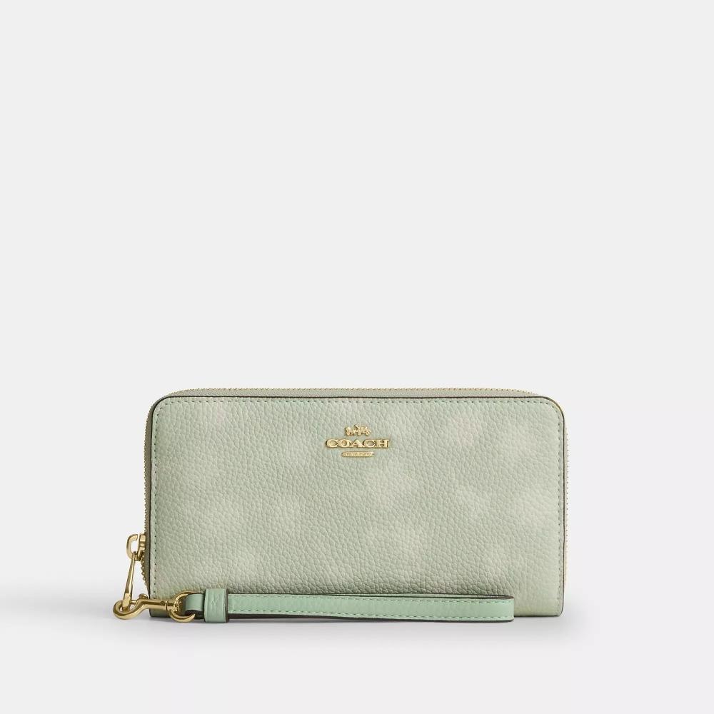 Coach Long Zip Around Wallet Gold Pale Green With Floral Print