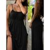 Summer French Sweet Style Plus Size Solid Color Drawstring Loose Sling Long Dress Lazy Elegant Casual Dress