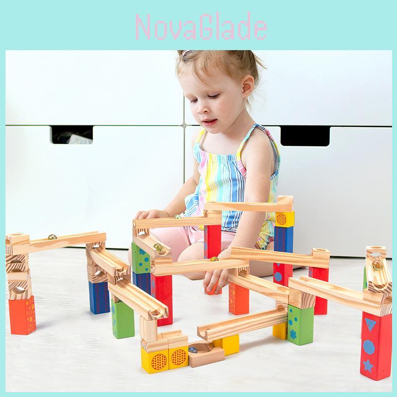 Wooden Childrens Ball Bearing Run Track Building Set For Ages 3 To 6 Educational Toy