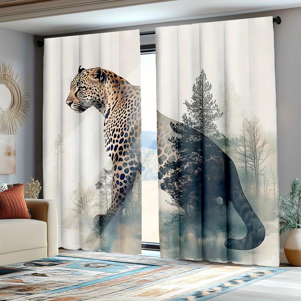 Vintage Cheetah Leopard Print Curtains Africa Wildlife Tropical Jungle Design Semi Transparent Polyester Drapes Li Set Of 2 Made