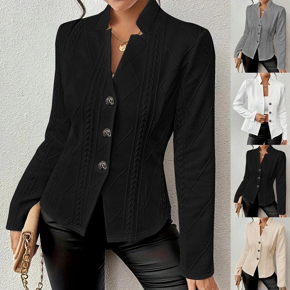 Button Patterned Small Suit Jacket Women for Autumn Winter Casual Blazer