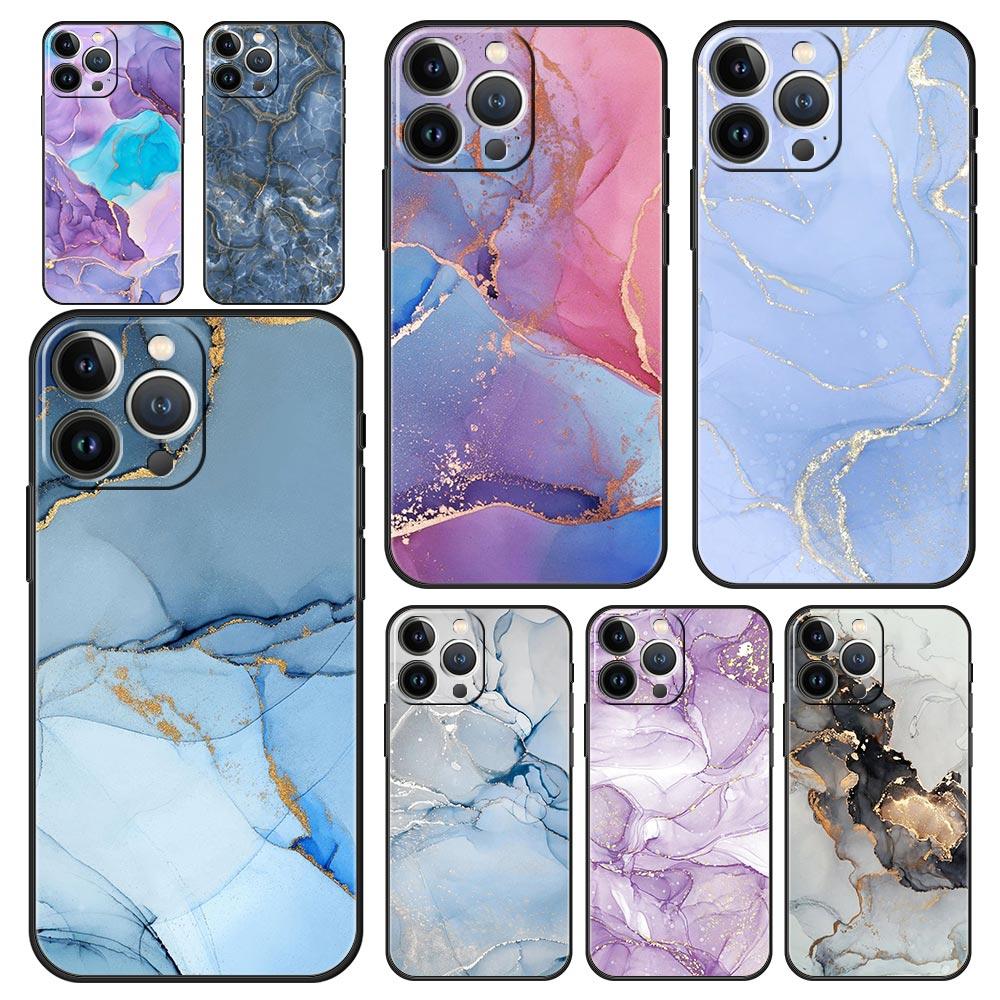 Luxury Phone Case For iPhone 16 15 14 11 Pro Max 13 12 XS X XR 7 8 Plus Shockproof Marble Ink Wash Cover Protect Funda