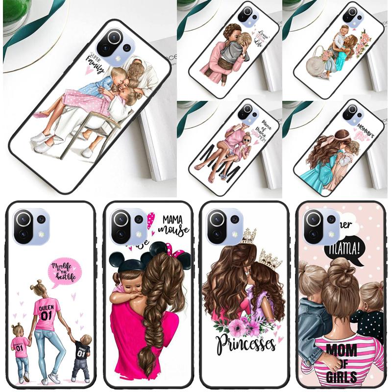 Black Brown Hair Baby Mom Girl Queen Cover For Xiaomi 14 Ultra 13 11T 12T 13T 14T Pro POCO X6 X7 Pro X3 X5 F3 F5 F6 M6 Pro Case