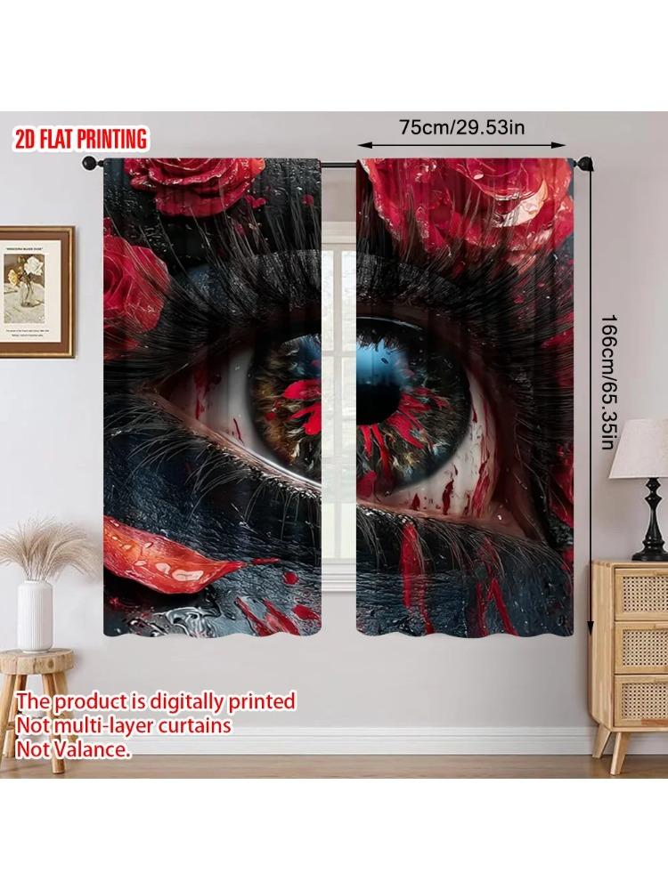 Set Of 2 Plane Printing Curtains Deep Eyes Polyester Fabric Without Rod Room Decor Use Living Sheer Made Window Treatment