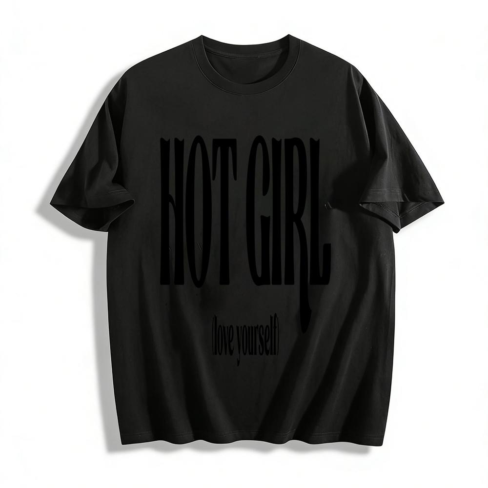 Women's Casual Loose Crew Neck T-Shirt with Retro HOT GIRL Slogan Print Love Yourself Theme Versatile Short Sleeve Pure Cotton T-shirt