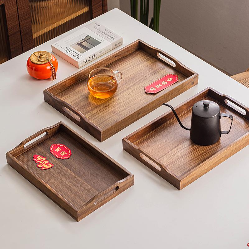 Chinese Style Household Black Walnut Solid Wood Rectangular Wooden Tray Coffee Cup Tea Tray Storage Plate Dining Plate Home