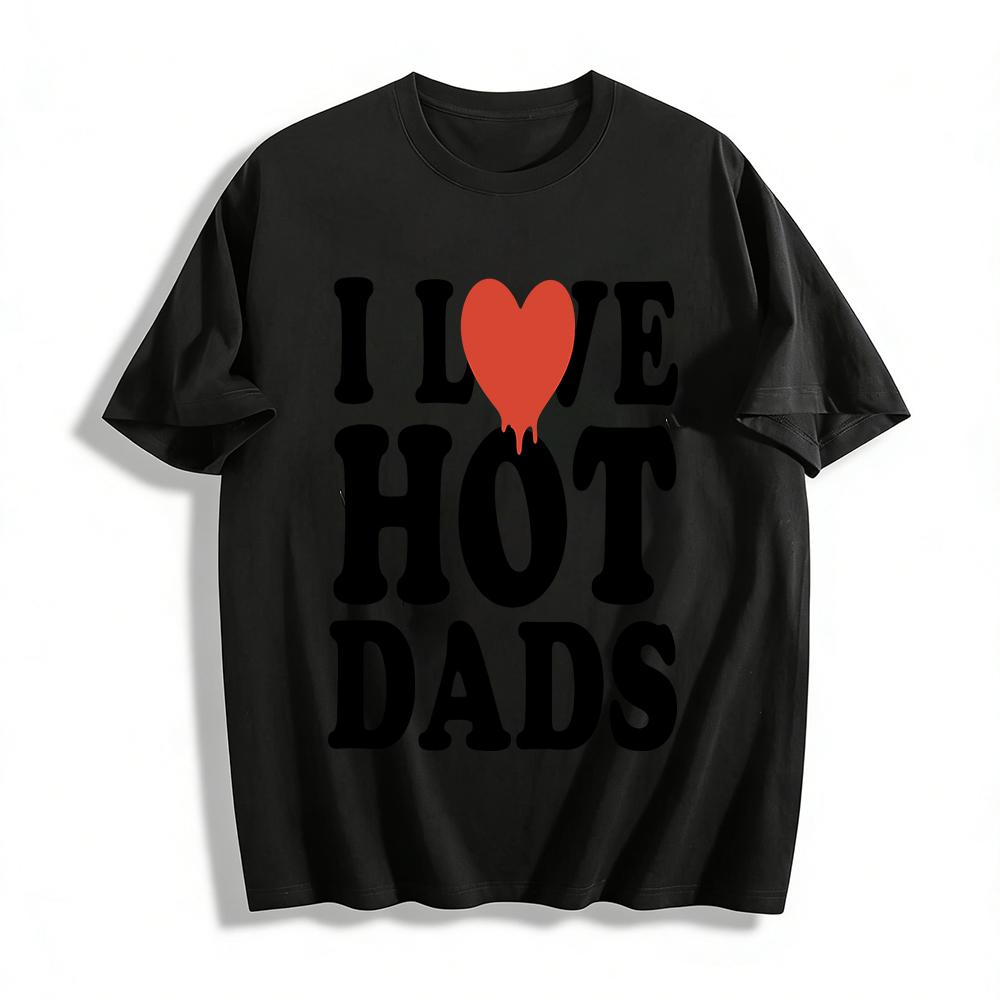 I Love Hot Dads Graphic Tee, Funny Heart Melt Print Casual Top, Unisex Daily Wear T-Shirt Pure Cotton T-shirt