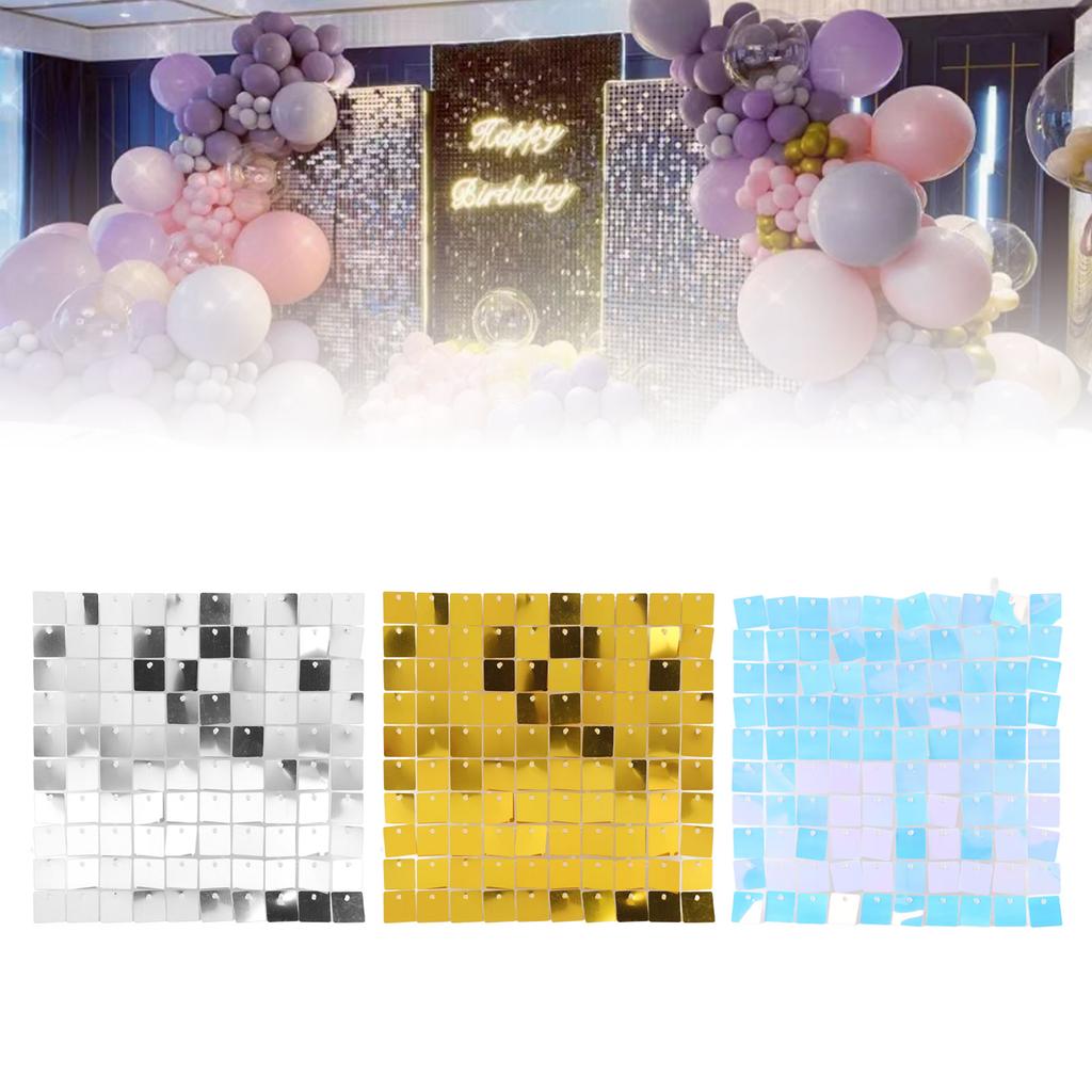 8PCS Square Sequin Wall Panels Glitter Backdrop for Birthday Wedding Party Decoration 30x30cm Sparkle Panel Set with Zip Ties