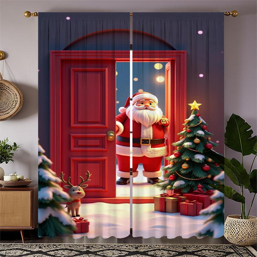 Modern Set Of 2 Christmas Santa Claus Tree Pattern Printed Curtains Decorations Home Room Curtain Polyester