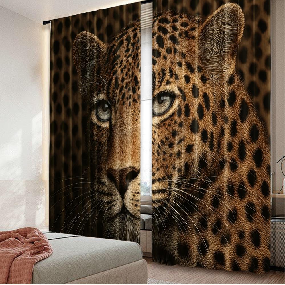 Set Of 2 Flat Printing Curtain Leopards Intense Gaze Digital Printed Polyester Drapes Party Decorations Use Indoor Outdoor