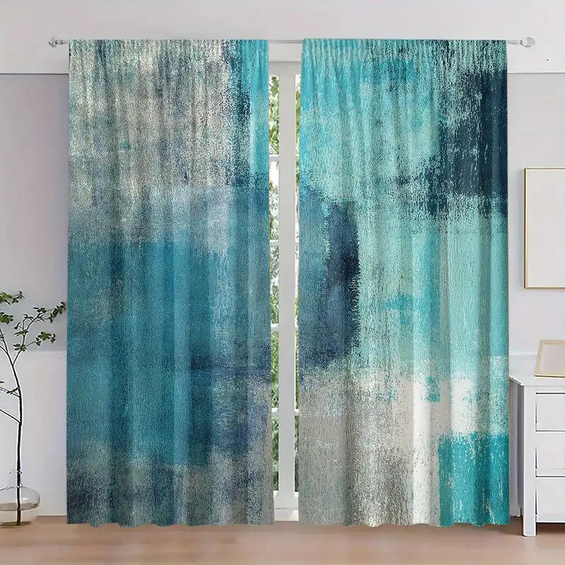 Dye Painted Printed Curtains Pole Bag Bedroom Living Room Home Decoration Set Of 2 Made Polyester Area Decor