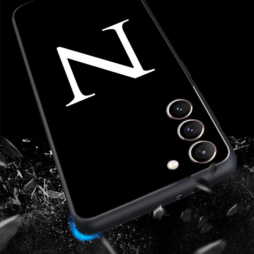 Initial Letter A Z Phone Case For Samsung Galaxy S26 Ultra S25 Plus S24 FE S23 S22 5G S21 S20 Cover Black Soft