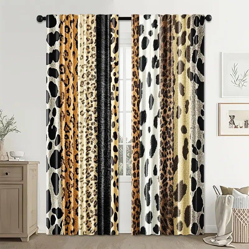 Wild Animal Fur Pattern Printed Curtains Pole Bag Bedroom Living Room Home Decoration Made Of Polyester Area Decor