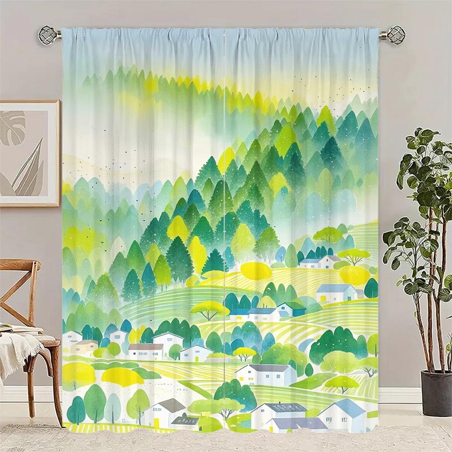 Rural Landscape Pattern Printed Curtains Pole Bag Christmas Decorations Daily Home Room Made Of Polyester