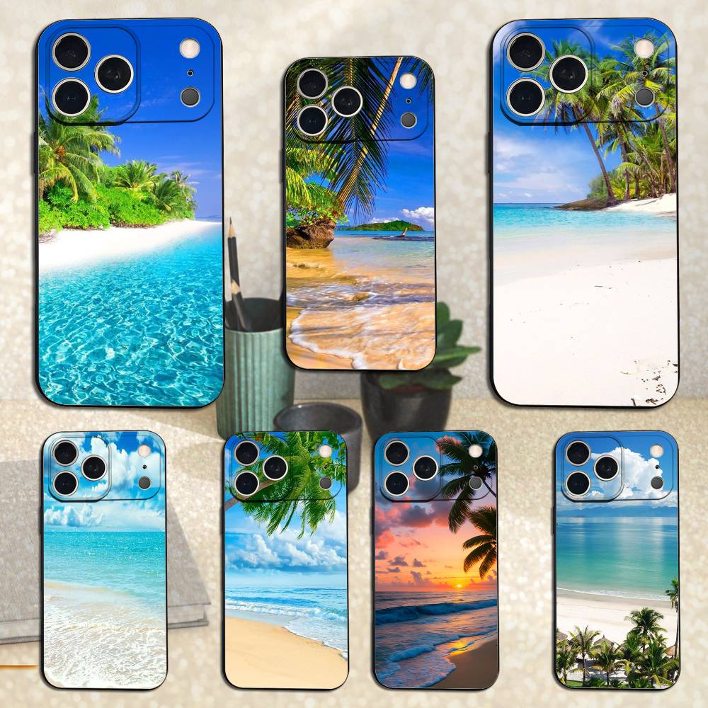 Sea Palm Trees Beach For iPhone 13,16,11,14,17,12,15,Plus,Pro Max,XS,X,XR,SE,Mini,8,7,Phone Case Soft Silicone Black