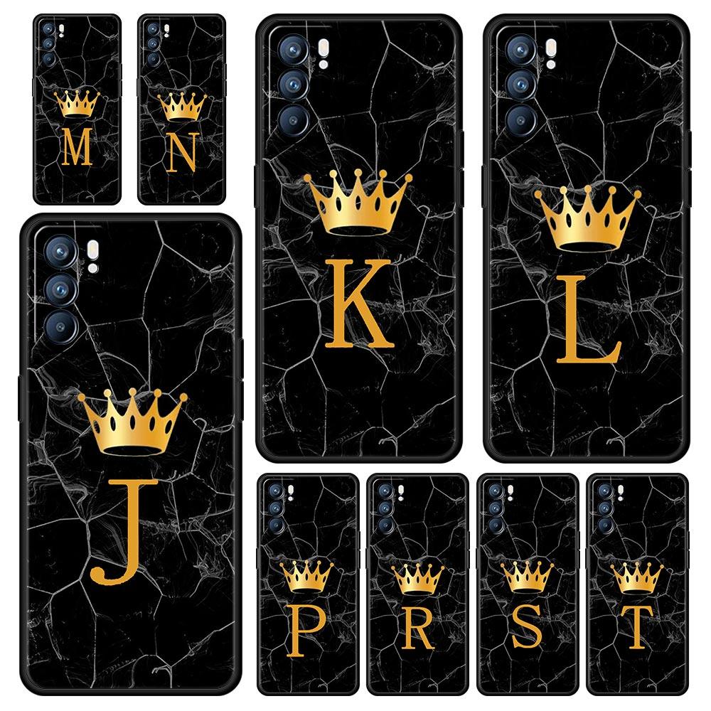 Phone Case For Oppo A54 A53 A52 A9 A15 A95 A17 A16 A76 A74 A57 A31 Find X6 X5 Reno8 Reno7 Reno6 Pro 5G Cover Crown Letter A To Z