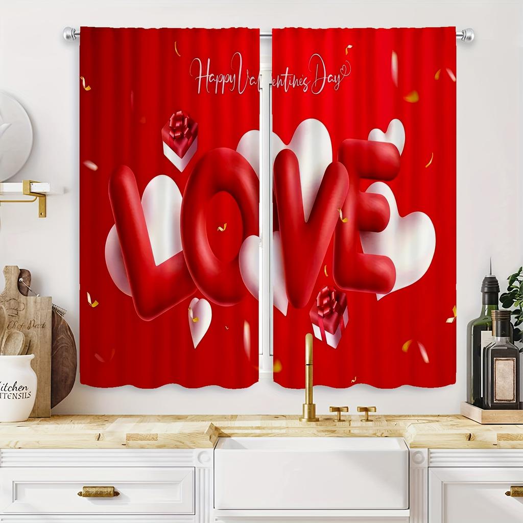 Set Of 2 Romantic Love Curtains Rose Red Heart Floral Hd Digital Print Semi Transparent Living Room Bedroom Curtain Polyester Machine Washable Ideal