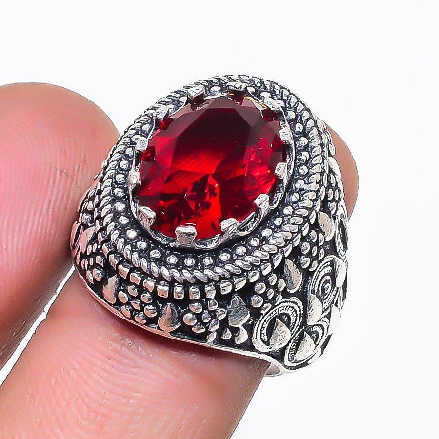 Natural Mozambique Garnet Gemstone 925 Sterling Silver Jewelry Ring Size 7 AR-16843