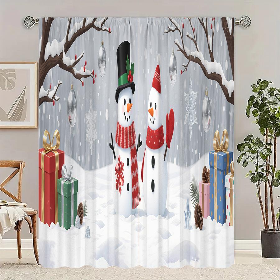 Christmas Gifts Snowman Printed Curtains Pole Bag Decorations Daily Home Room Curtain Made Of Polyester Washable