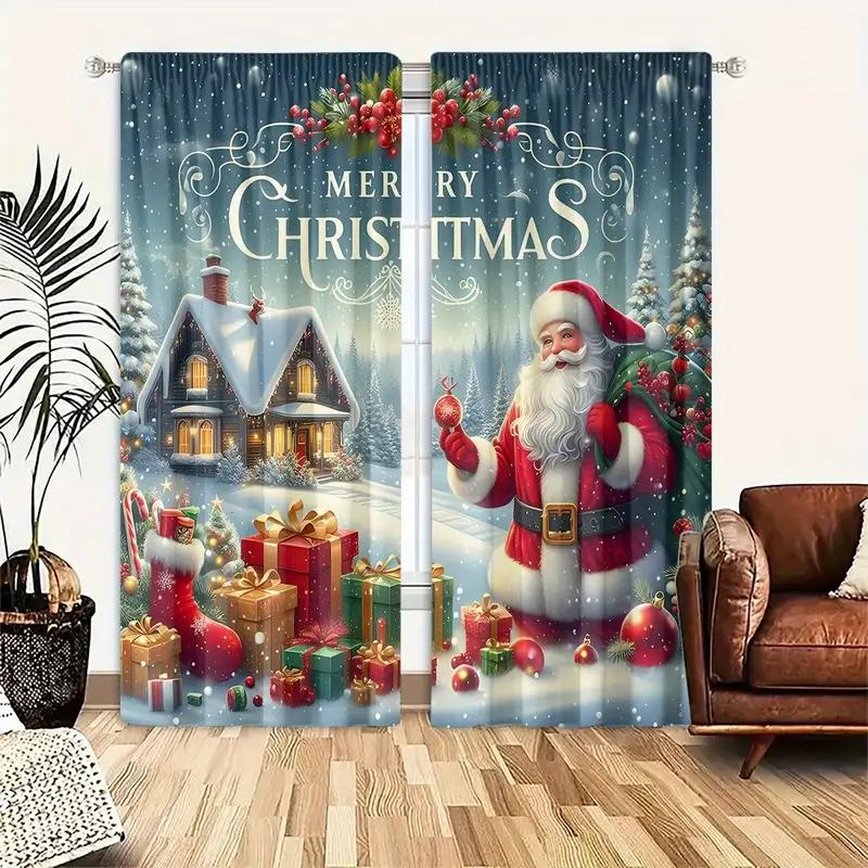 Set Of 2 Santa Claus Pattern Filtering Polyester Curtains Christmas Home Windows Classic Made
