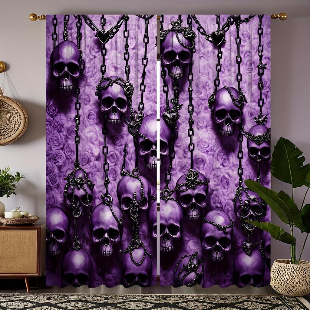 Purple Gothic Skull Chain Curtains Pocket Rod Digital Print Polyester Bedroom Living Room All Season Decor Curtain Sheer For Sitting Made Of
