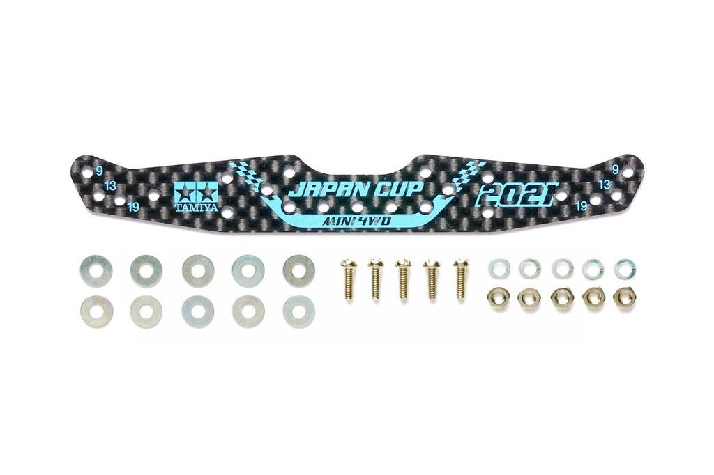 A lightweight, highly rigid 1.5mm thick limited edition carbon plate with the Tamiya logo and J-CUP 2021 logo printed in a special blue color.
