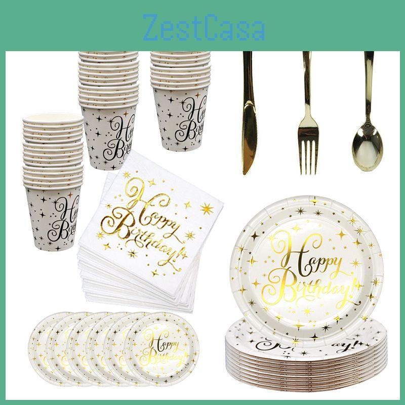 Stylish Gold Polka Dot Stamping Happy Birthday Party Decor Supplies Disposable Tableware Essentials