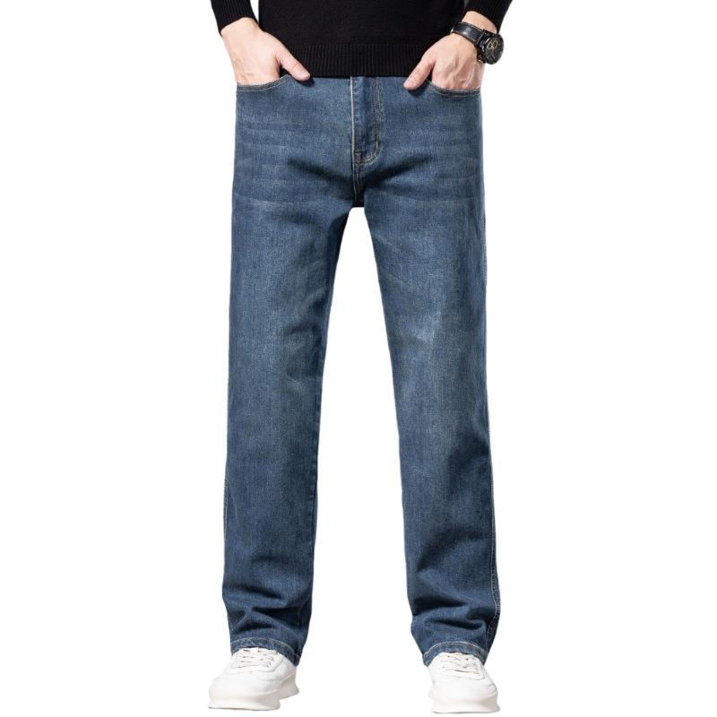 Small Jeans Men's Pure Cotton Loose Straight Wide-leg Elastic Casual Versatile Trendy Denim Trousers