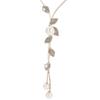 Ladies Fashion Faux Pearl Tassel Leaves Pendant Long Chain Sweater Necklace