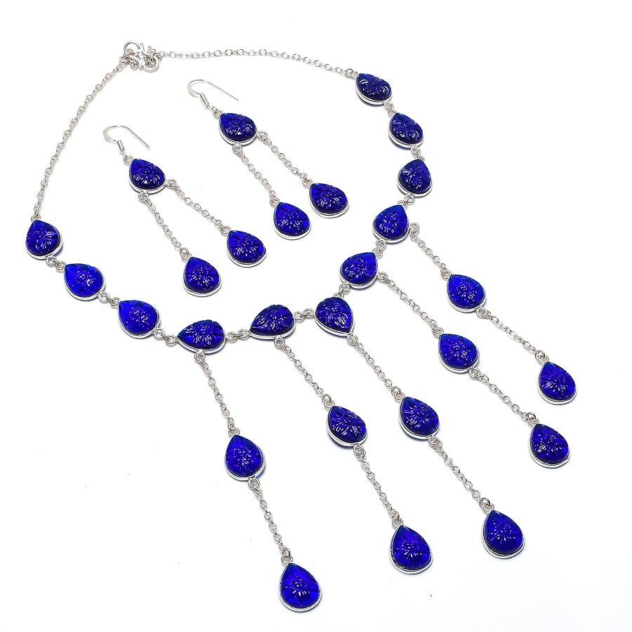 Natural Blue Chalcedony Gemstone 925 Sterling Silver Jewelry Necklace 18" ASN-6066