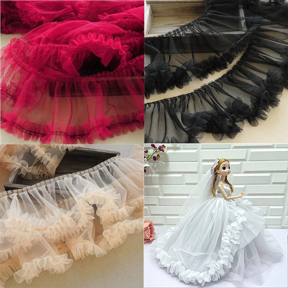 15X91cm Pink Mesh Lace Trims Pleated Fold Tulle DIY Sewing Crafting Women Supplies Baby Dress Garment Gauze Ruffle Ribbon